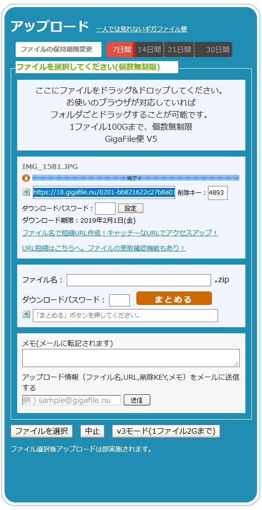 これでデータの「ダウンロードURL」が当店まで送信されました。